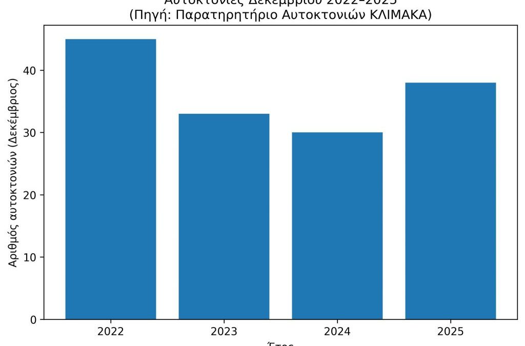 Σύμφωνα με τη νεότερη ανάλυση του ερευνητικού δικτύου καταγραφής, καταγράφηκε σημαντικός αριθμός περιστατικών αυτοκτονίας σε ολόκληρη την ελληνική επικράτεια κατά τον Δεκέμβριο. Η εικόνα του μήνα καταδεικνύει αυξημένη επιβάρυνση σε σύγκριση με τα αμέσως προηγούμενα έτη, επιβεβαιώνοντας τη διατήρηση και ενίσχυση της ανοδικής τάσης του ζητήματος της αυτοκτονίας.