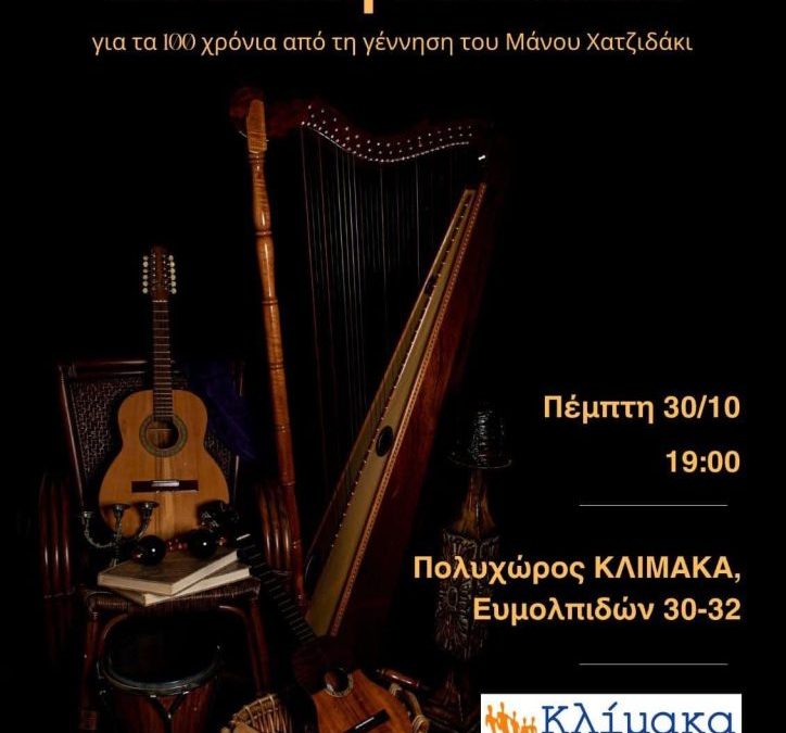 Με αφορμή την έναρξη του προγράμματος, την Πέμπτη 30/10 στις 19:00, σας περιμένουμε στον Πολυχώρο της ΚΛΙΜΑΚΑ σε μια μουσική βραδιά αφιερωμένη στα 100 χρόνια από τη γέννηση του Μάνου Χατζιδάκι.
