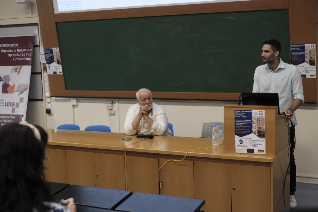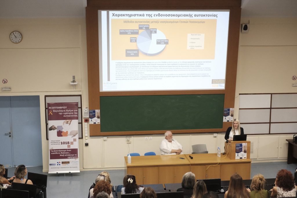 Στην εκδήλωση, ο Αναπληρωτής Διοικητής κ. Δημήτριος Παπαδάκης εξέφρασε την υποστήριξή του στο εγχείρημα, τονίζοντας τη σημασία της κοινής προσπάθειας για την πρόληψη και την ψυχική υγεία. Στη συνέχεια, ο κ. Κυριάκος Κατσαδώρος, ψυχίατρος και Επιστημονικός Διευθυντής της ΚΛΙΜΑΚΑ, μίλησε για τους βασικούς πυλώνες της παρέμβασης εντός του νοσοκομείου. Οι ακόλουθες εισηγήσεις αφορούσαν τις διεθνείς πρακτικές και το κοινωνικοοικονομικό κόστος της αυτοκτονίας στις δημόσιες μονάδες υγείας, όπως αναπτύχθηκε από την κα. Βασιλική Στάμου, Συντονίστρια του Κέντρου για την Πρόληψη της Αυτοκτονίας, το τηλεφωνικό follow-up, από την κα. Χαρά Βλαστάρη-Δυοβουνιώτου, ψυχολόγο του Κέντρου, καθώς και τον τρόπο προσέγγισης των Μέσων Μαζικής Ενημέρωσης στην αυτοκτονία, από τον κ. Άκη Μακρυγιάννη, επίσης ψυχολόγο του Κέντρου.
